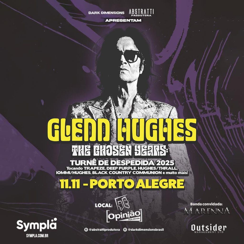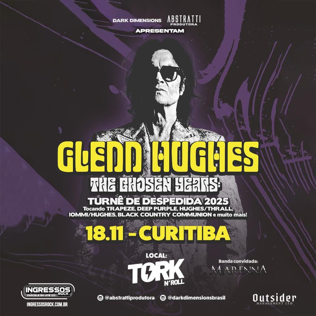 O lendário baixista e vocalista britânico Glenn Hughes, conhecido como The Voice of Rock, retorna ao Brasil em novembro para apresentar a turnê de despedida “The Chosen Years”, que celebra momentos marcantes de sua trajetória. Dentre as datas, o músico se apresenta em Porto Alegre, no Bar Opinião, no dia 11 de novembro, e em Curitiba, no Tork N’ Roll, no dia 18 de novembro. A abertura em ambas as cidades fica por conta da banda gaúcha Marenna.