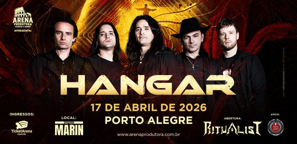 Com Pedro Campos nos vocais, Fabio Laguna nos teclados, Cristiano Wortmann e Eduardo Martinez nas guitarras, Nando Mello no baixo e Aquiles Priester na bateria, o Hangar prepara um show muito especial, celebrando a trajetória consolidada de uma das maiores bandas de Heavy Metal do Brasil. Sobre este retorno do Hangar aos palcos, Rogério Reis comenta: “Tocar ao lado destas verdadeiras referências do Metal gaúcho é uma honra, e agradecemos o convite da Arena pela oportunidade. Neste show apresentaremos músicas deste novo trabalho, que ao vivo ganharão uma dimensão muito maior daquela registrada em estúdio, mostrando esta nova fase da banda. Aguardaremos todos lá”.
